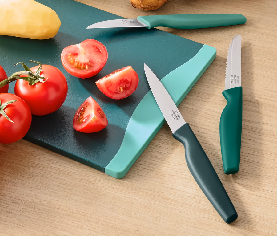 - Pro každý účel ten správný nůž: nůž na loupání, nůž na ovoce a zeleninu a univerzální nůž