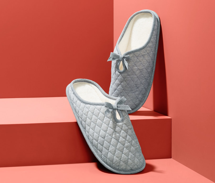 Pantofle jsou velmi pohodlné, a navíc mají dekorativní vzhled. Jsou zpracovány s prošívaným kosočtvercovým vzorem, dekorativní paspulkou a ozdobnou mašličkou.