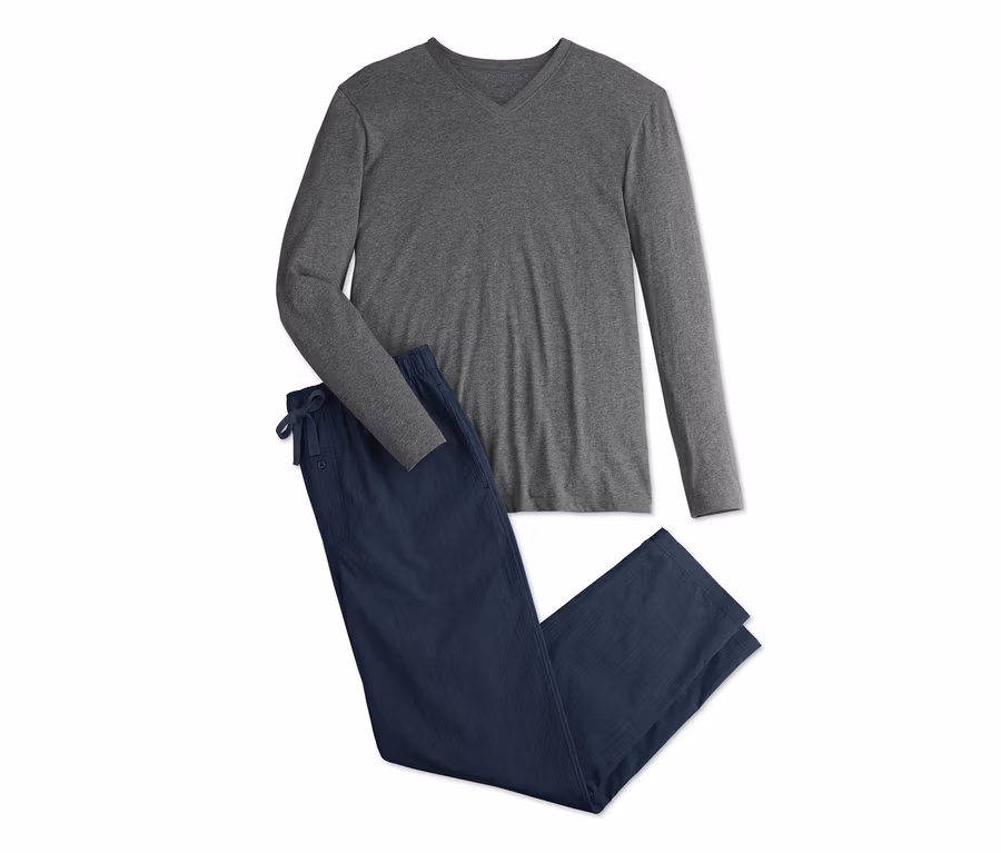 Dobrému ránu vždy předchází dobrá noc – a abyste si mohli skutečně odpočinout, potřebujete správné pyžamo. Proto je toto pánské pyžamo vyrobené z čisté biobavlny, která je obzvlášť příjemná na tělo a zaručuje vysoký komfort nošení během spánku. Vršek s výstřihem do V je vyrobený z měkkého materiálu single jersey, kalhoty mají elastický pas se šňůrkou na zavazování, rozparek na knoflíčky a dvě boční šikmé kapsy.
