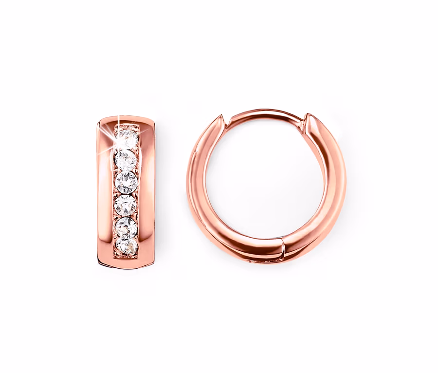 Kruhové náušnice patří mezi nejkrásnější a nejklasičtější šperky v dámském světě. V tomto případě přichází tento kruhový skvost se speciálním ozvláštněním: Tyto náušnice jsou zdobené třpytivými kamínky Swarovski®.