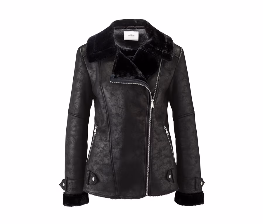 Tato nadčasová klasika s ležérním střihem se dá perfektně kombinovat a necouvne ani před větrem a nepříznivým počasím. Motorkářská klasika má límec a vnitřní podšívku z hřejivé umělé kožešiny, která nepochází ze srsti zvířat. Bunda ve stylu kožené bundy má asymetrický zip na přední straně a dvě boční kapsy na zip.