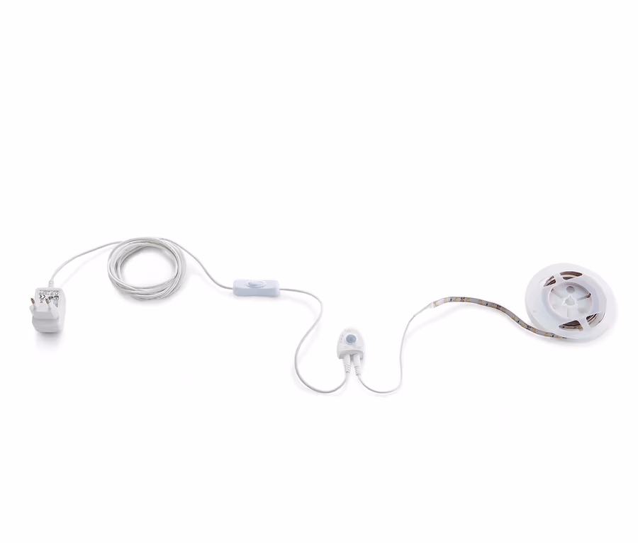 Samolepicí LED pás je zhruba 2 metry dlouhý a dá se připevnit prakticky kamkoli: pod strop místnosti, nad podlahu, decentně pod postel nebo na hrany nábytku – 60 LED vydávajících teplé bílé světlo zajistí požadovaný účinek. Senzor snímá vzdálenost tří metrů pod úhlem cca 110°. Doba svícení je variabilní, svítivost lze plynule nastavit.