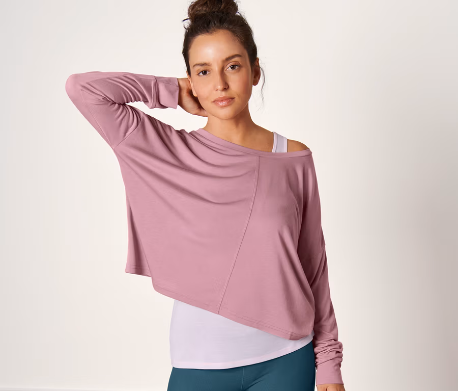- Ležérně střižené triko s dlouhým rukávem se spadlými rameny a lodičkovým výstřihem