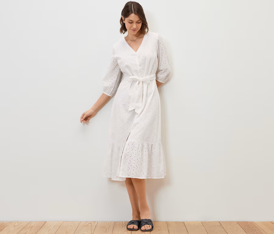 Košilové šaty s ažurovou výšivkou