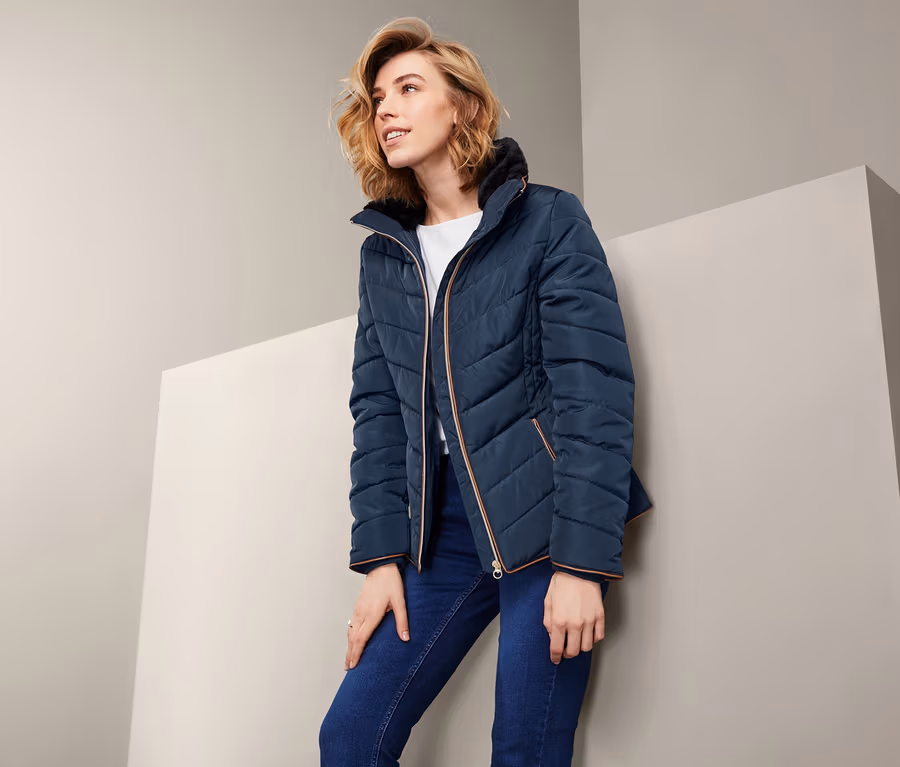 Tato prošívaná bunda je nejlepším průvodcem, kterého si můžete při podzimní procházce dopřát. Je vybavena měkkým, hřejivým vatováním z recyklovaného materiálu, takže je příjemná na tělo. Vysoko uzavíratelný stojáček s odepínatelnou umělou kožešinou na vnitřní straně chrání krk před studeným větrem.