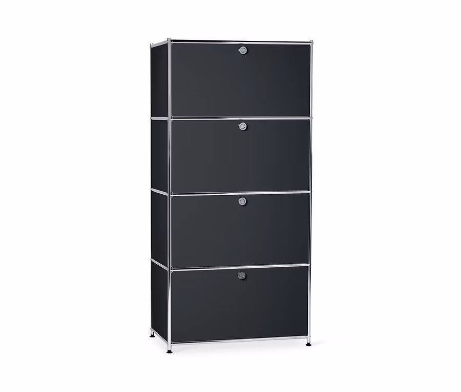 Kovová vysoká skříňka CN3 se 4 výklopnými dvířky, černá