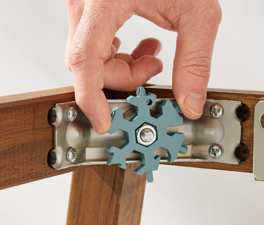 • 3 šestihranné klíče, 8 šroubových klíčů, 2 nástrčné ořechy, 2 křížové šroubováky Phillips, plochý šroubovák, řezací nůž, otvírák na láhve, klíčový otvor