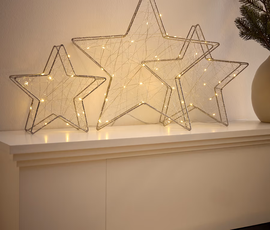 - 3D kovové hvězdy s dekoračním světelným řetězem s mikro LED