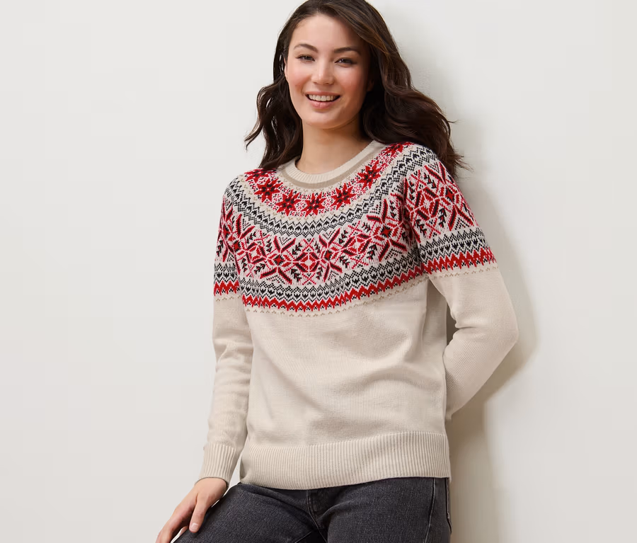 - Krémová bílá s žakárovým norským vzorem v červené a černé barvě