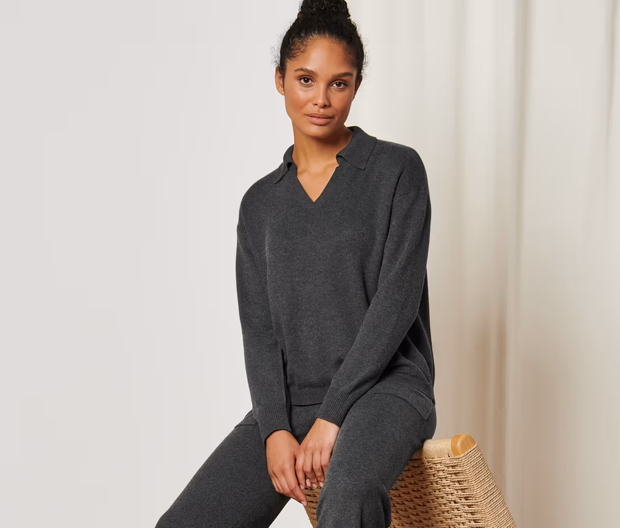 - Tento svetr obsahuje vlákna z udržitelně pěstovaného dřeva.