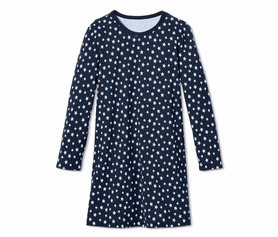 Tato úžasná noční košile s hvězdičkovým celopotiskem splní všechny dívčí sny! Ať už máte doma malou princeznu nebo průzkumnici nebeských galaxií – každá dívka, která vklouzne do této noční košile, zažije ty nejkrásnější sny. A pssst: bavlna příjemná na tělo a podíl elastanu přispívají k vysokému komfortu noční košile a zajišťují ještě příjemnější spánek.