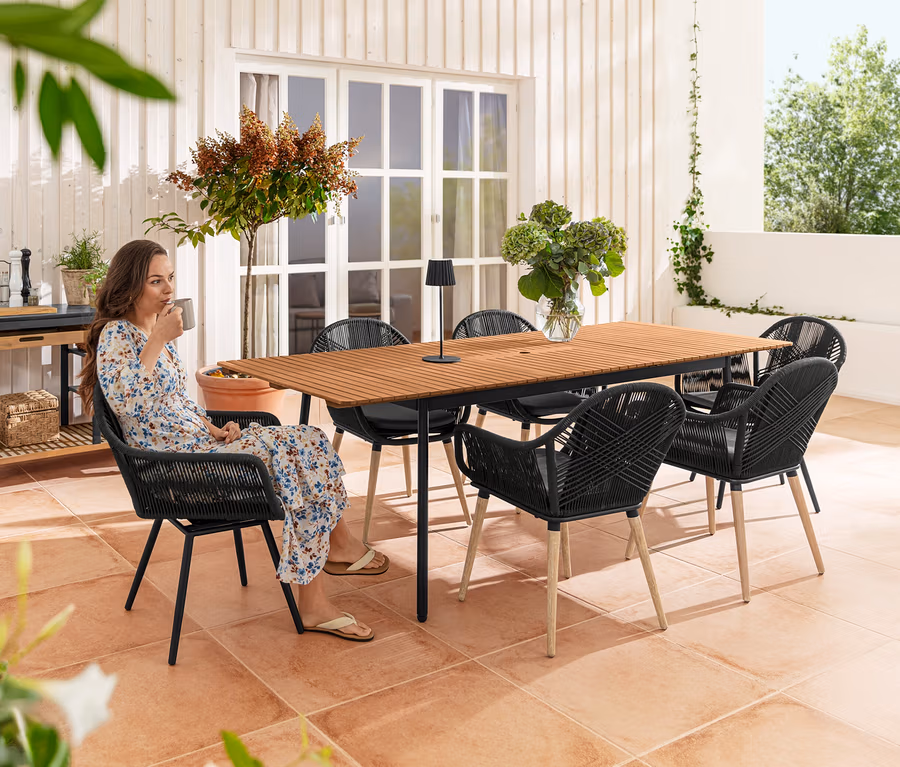 • Deska stolu z olejovaného eukalyptového dřeva s certifikací FSC® v teakovém vzhledu