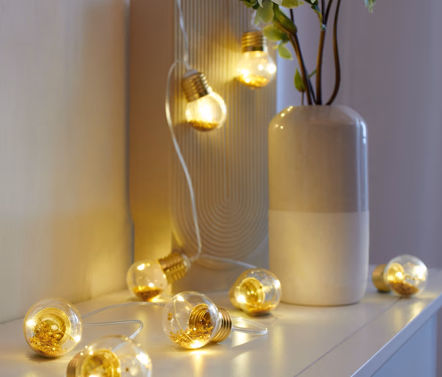 Třpytky uvnitř žárovek: lesklé zlaté
