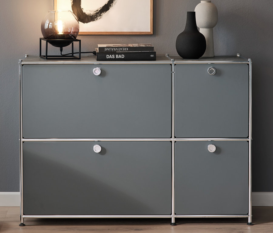 Odkládací skříňka CN3 se 4 výklopnými dvířky, šedá