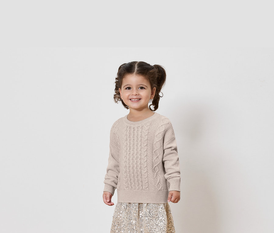 - Žebrované náplety na kulatém výstřihu, rukávech a spodním okraji