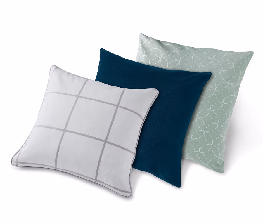 Všechny dobré věci jsou po třech! A jeden z těchto tří stylových povlaků na polštářky je navíc oboustranný: jedna strana je jednobarevná, druhá je kostkovaná. Díky tomu se dá modrý sametový povlak a pastelově zbarvený dekorační polštářek s filigránským potiskem úžasně kombinovat. Povlaky mají praktické zapínání na zip, takže se dají rychle vyměnit a lze je bez problémů prát v pračce.