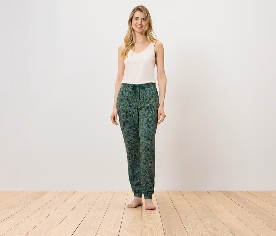 Pyžamové kalhoty, zelená s celoplošným potiskem