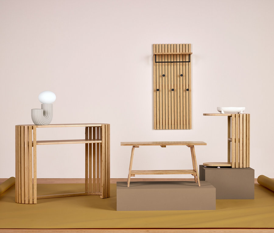 Bambusový stolek ve tvaru C »HOLT« s lamelovými prvky