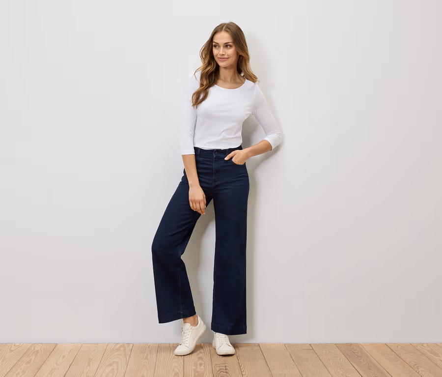Džíny s širokými nohavicemi – střih »Viki«, rinse