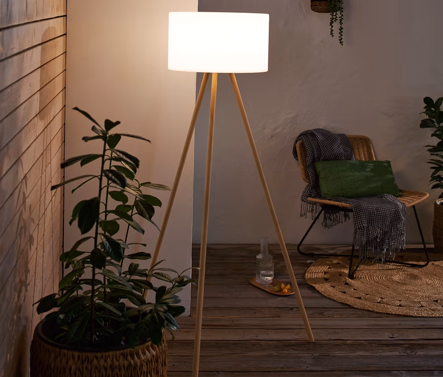 - Akumulátorová stojací lampa vhodná do exteriéru