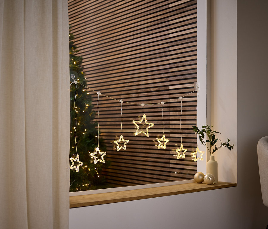 - Akrylové hvězdy pro atmosférickou dekoraci oken – teplé bílé světlo