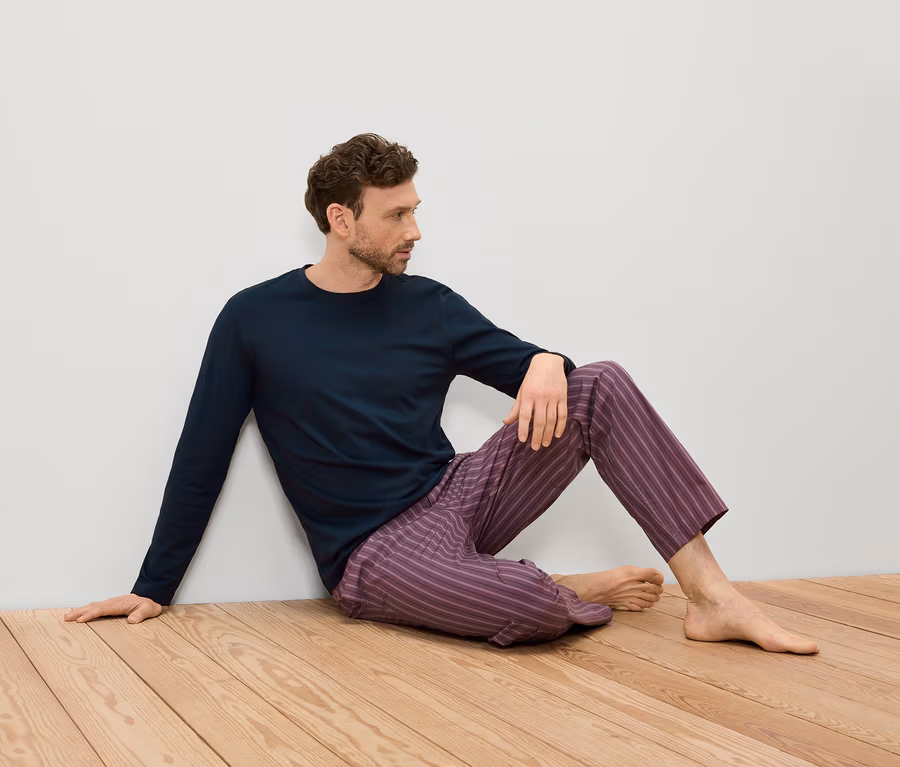 - Pyžamo z čisté bavlny – kalhoty z tkaného materiálu