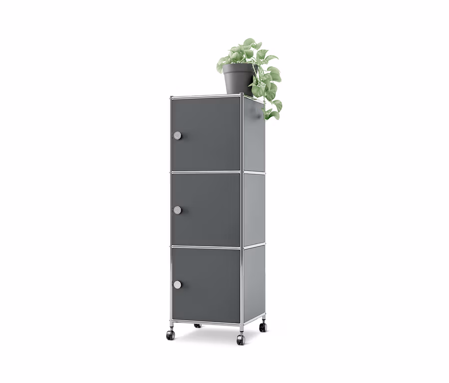 Kovový kontejner na kolečkách CN3 se 3 dvířky, šedý