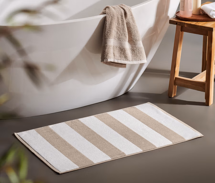 Kvalitní předložka do sprchy, béžovo-bílé proužky