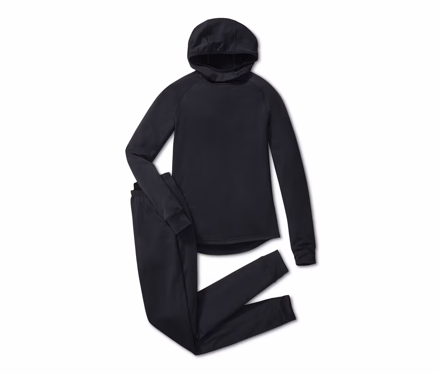Dlouhé kalhoty mají – stejně jako vršek s dlouhými rukávy – měkce zdrsněnou vnitřní stranu, také optimálně udržují teplo. Vršek má prodloužený zadní díl a vysoko zapínatelnou kapuci. Prádlo je prodyšné, dobře odvádí vlhkost a rychle schne. Díky obsahu elastanu navíc dobře drží tvar, perfektně sedí, a přitom poskytuje úplnou volnost pohybu. Extra ploché švy zaručují, že se toto dámské spodní prádlo obzvlášť dobře nosí.