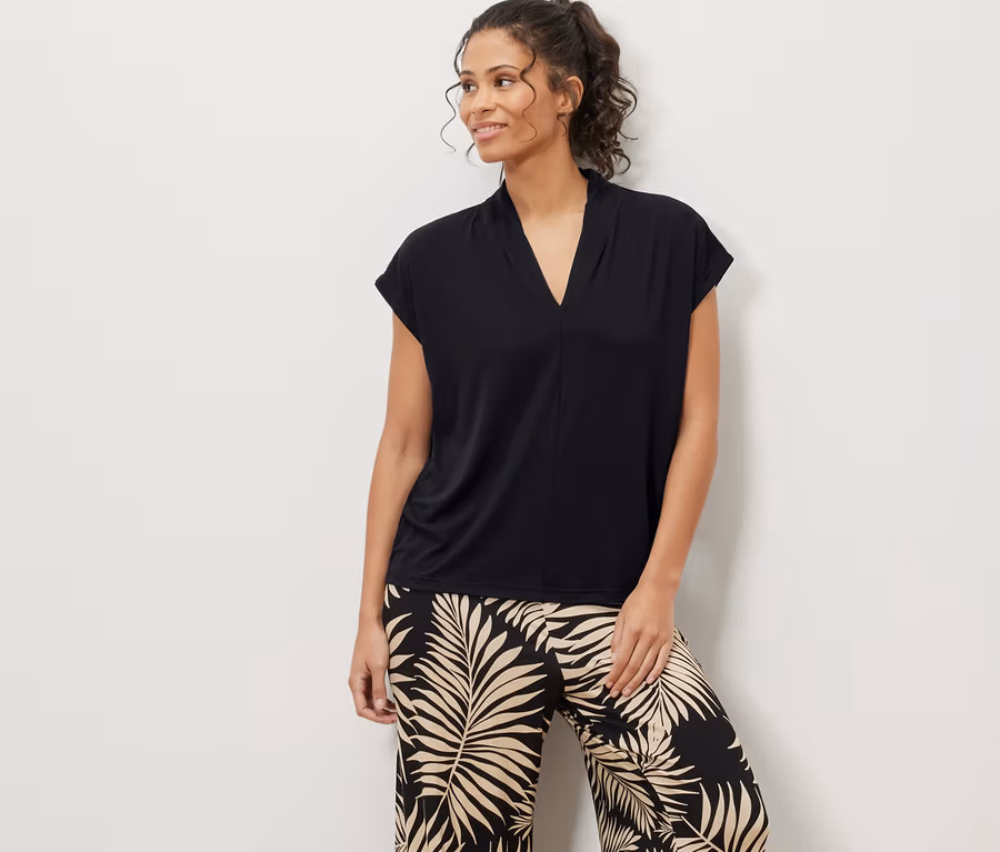Halenkové triko s výstřihem do V, černá
