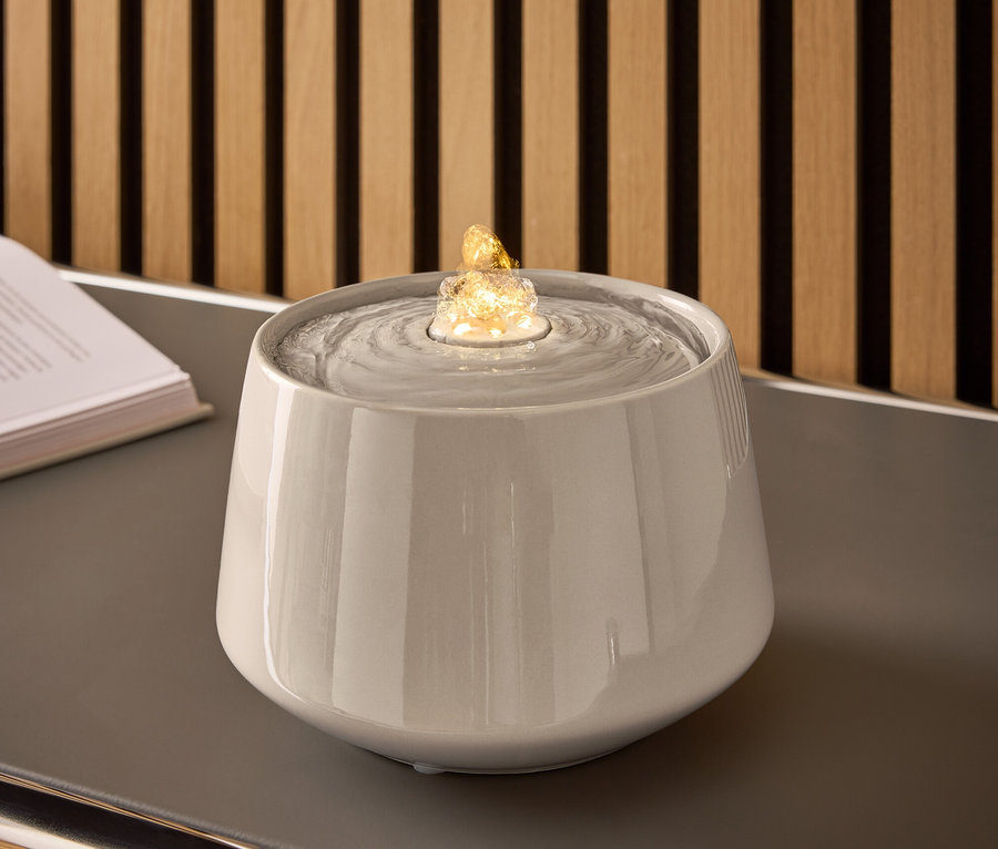 • Bublající pokojová fontána s osvětleným vodním prvkem
