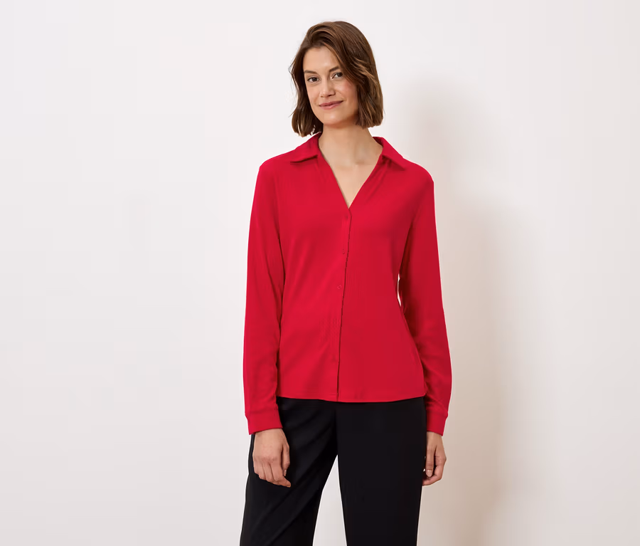 Halenkové triko s knoflíkovou légou, červená