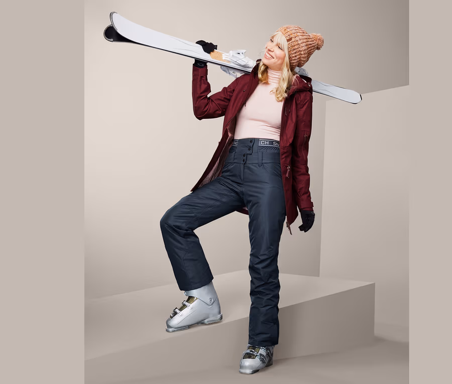 - Konce nohavic nastavitelné do šířky, s nepromokavou protisněhovou manžetou a protiskluzovým pogumováním – chrání lyžařské boty a boty na snowboard před proniknutím sněhu dovnitř