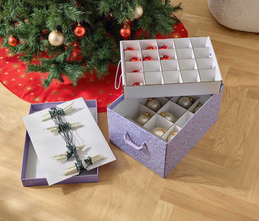 • S přihrádkami pro bezpečné uložení vánočních koulí, světelných řetězů, ozdob na stromek apod.