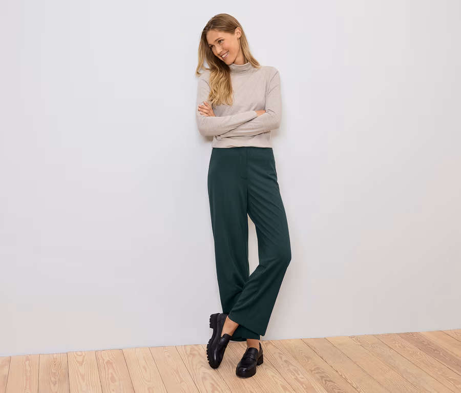 Žerzejové kalhoty, tmavě zelená
