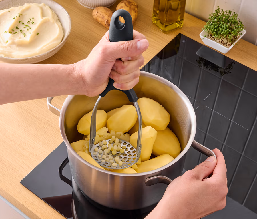 Prostorově úsporné šťouchadlo na brambory, skládací