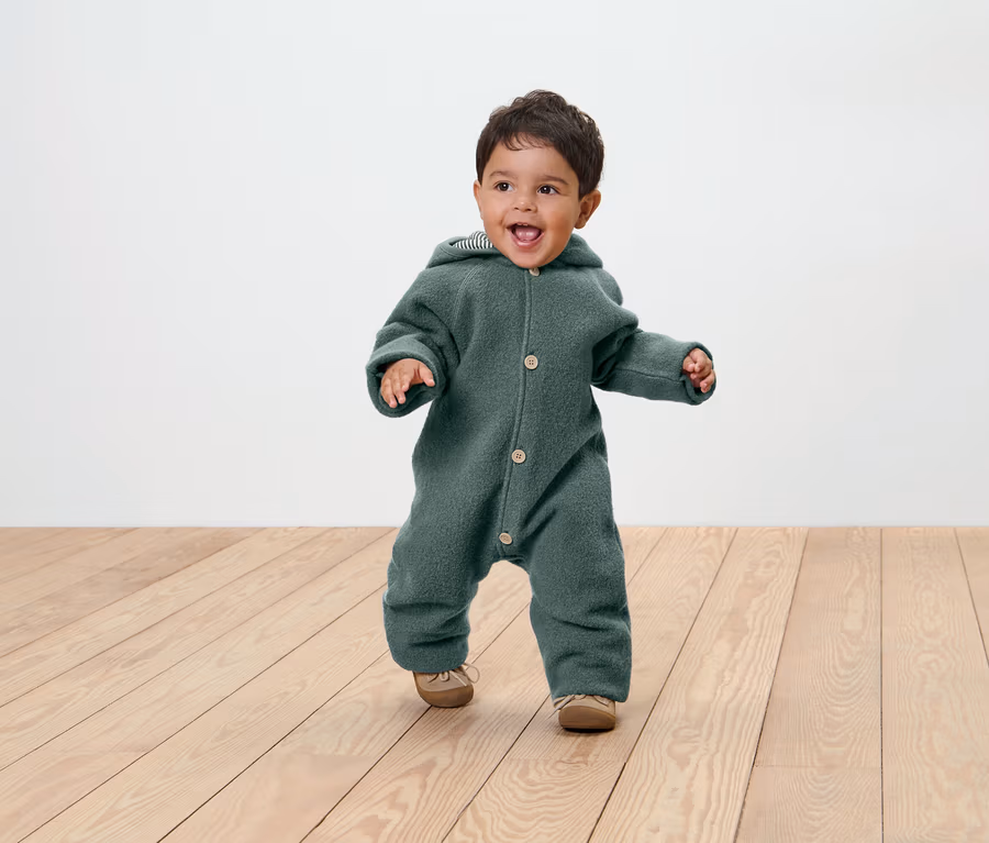 - Vel. 50/56 – 74/80: s ohrnovacími konci rukávů a nohavic proti studeným nohám a rukám