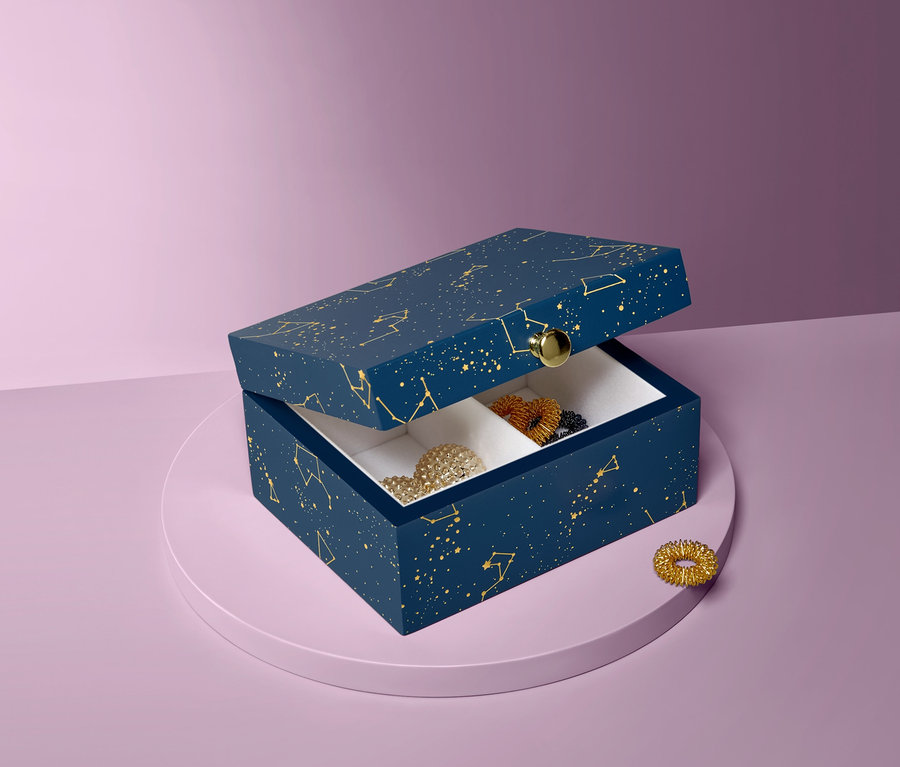 • V elegantní tmavě modré barvě s krásným potiskem hvězd
