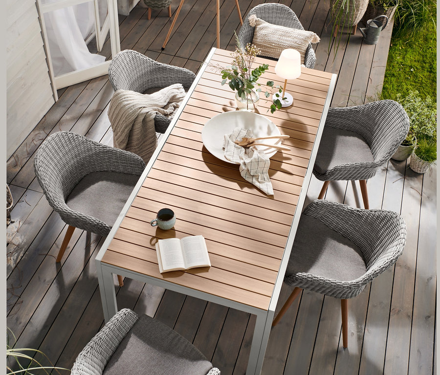 Akumulátorová stolní lampa s LED, v dřevěném vzhledu