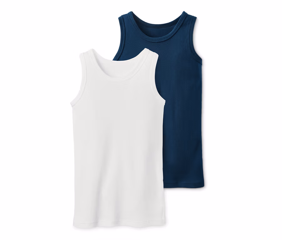 Čím pohodlnější spodní prádlo, tím lépe se děti cítí při dovádění a hraní. A tyto nátělníky jsou vyrobené z měkké, tvarově stabilní, jemně žebrované pleteniny z čisté bavlny s certifikací GOTS, takže jsou obzvlášť příjemné vůči citlivé dětské pokožce. Nátělníky mají pohodlný, elastický výstřih a rovný úzký střih, takže perfektně sedí při každém pohybu.