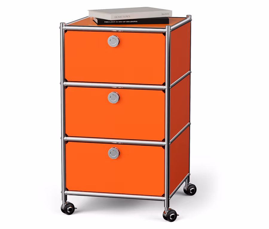 Kovový kontejner na kolečkách »CN3« se 3 zásuvkami, oranžová