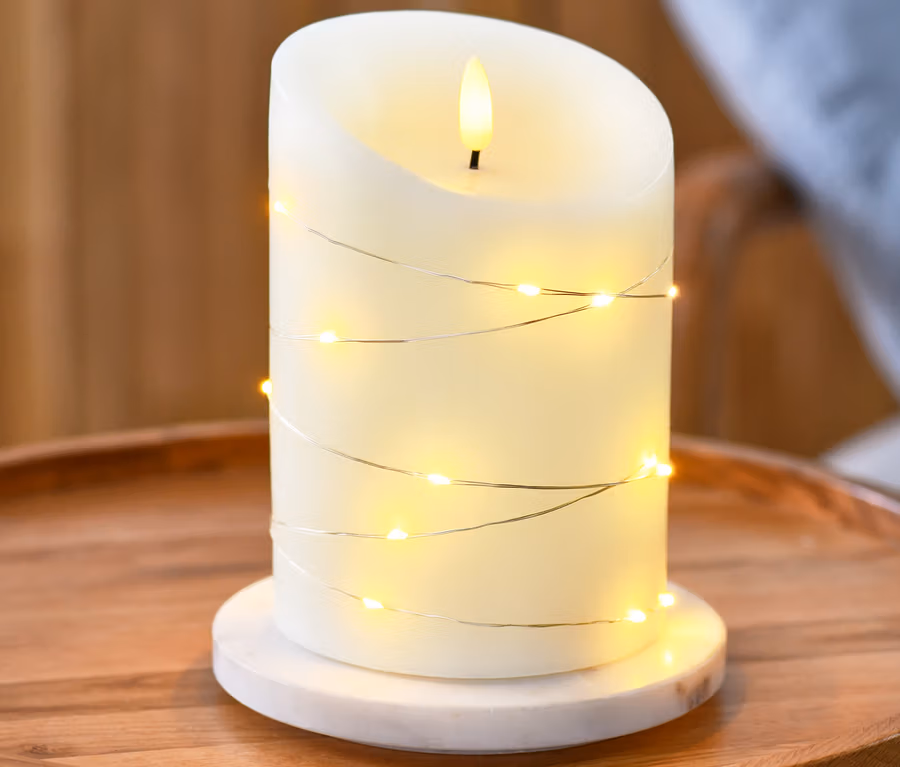 Svíčka z pravého vosku s LED a světelným řetězem s mikro LED