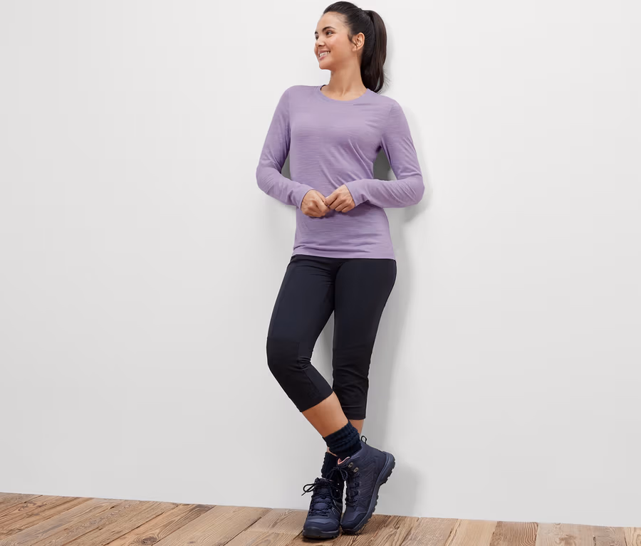 Triko s dlouhým rukávem s vlnou merino, fialová
