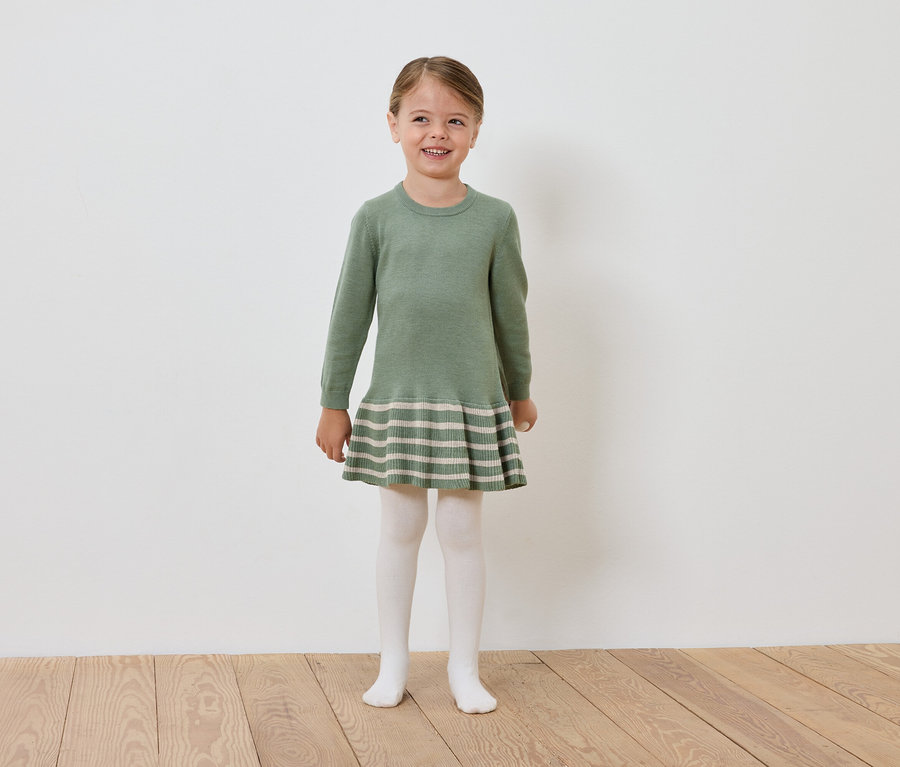 - S kulatým výstřihem a našitou sukní s žebrovanou strukturou