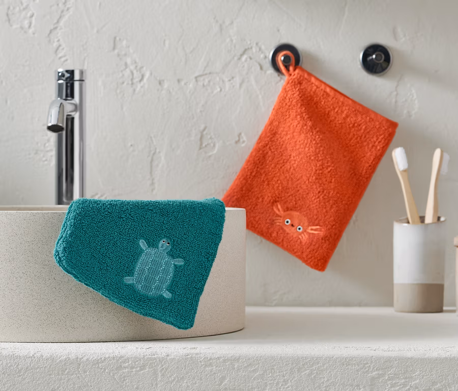 1x oranžová s výšivkou kraba, 1x modrozelená s výšivkou želvy