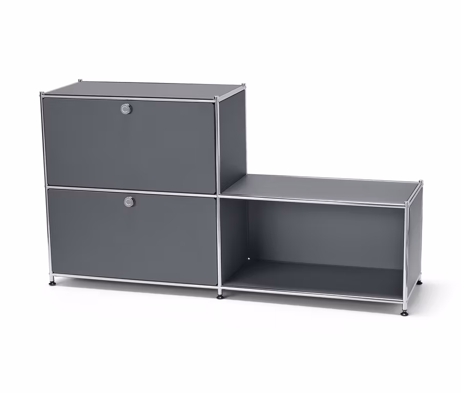 - 2 výklopná dvířka, každá se 2 kvalitními kovovými nůžkovými závěsy
