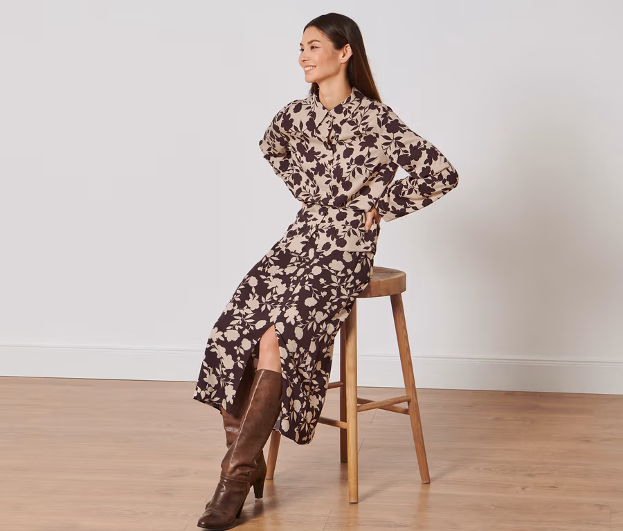 - Lilková s béžovým celopotiskem květů