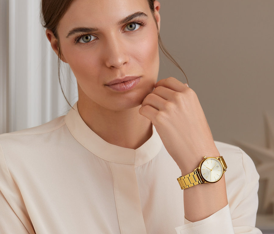 Dámské hodinky, ušlechtilá ocel s povrchovou úpravou PVD, zlatá barva