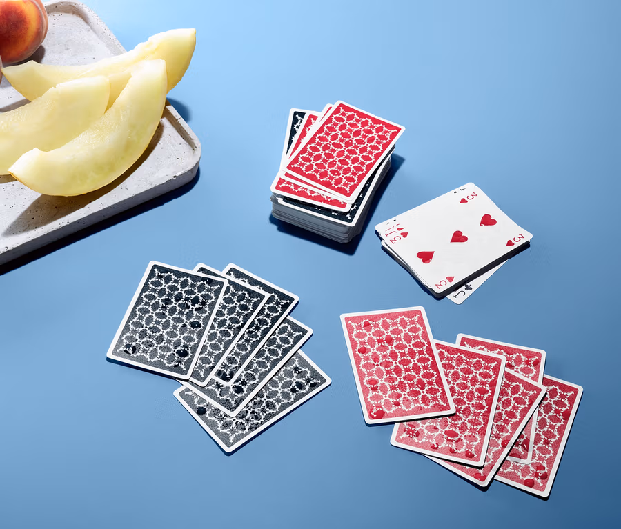 S těmito kartami nehrozí žádná pohroma ani v případě převrhnuté skleničky s vodou – karty jsou voděodolné a úžasně robustní. V případě nehody nebo nečekané dešťové přeháňky se dají jednoduše otřít hadříkem – a karetní partie může pokračovat.