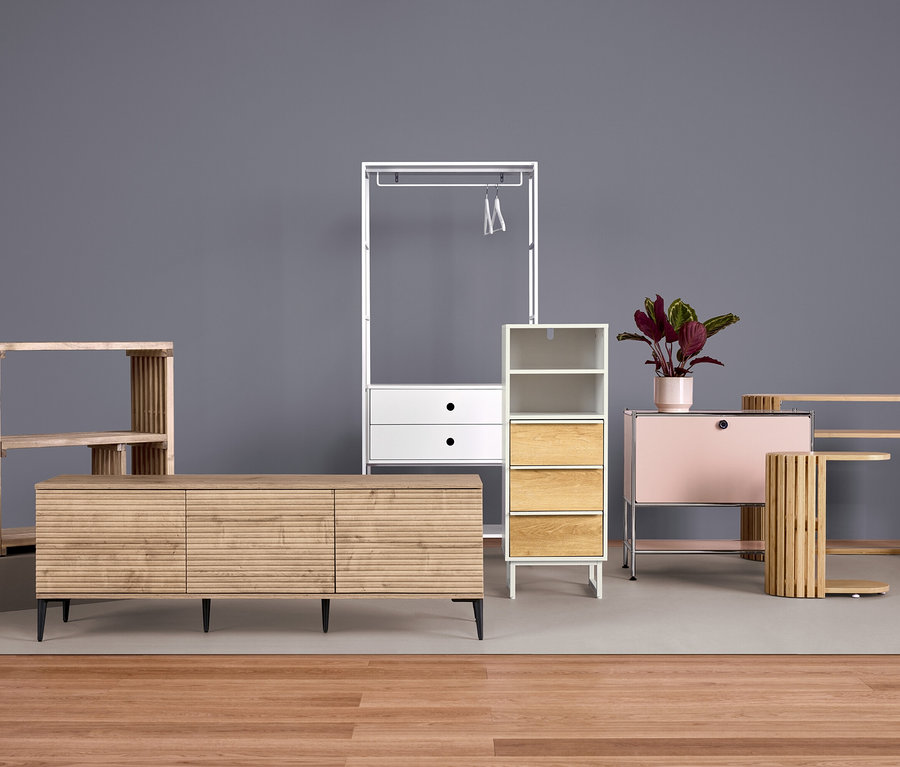 - Včetně výškově nastavitelných nožek, materiálu pro připevnění na zeď, montážního materiálu a návodu k sestavení